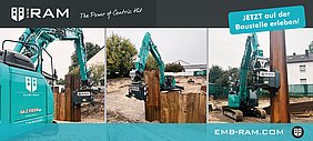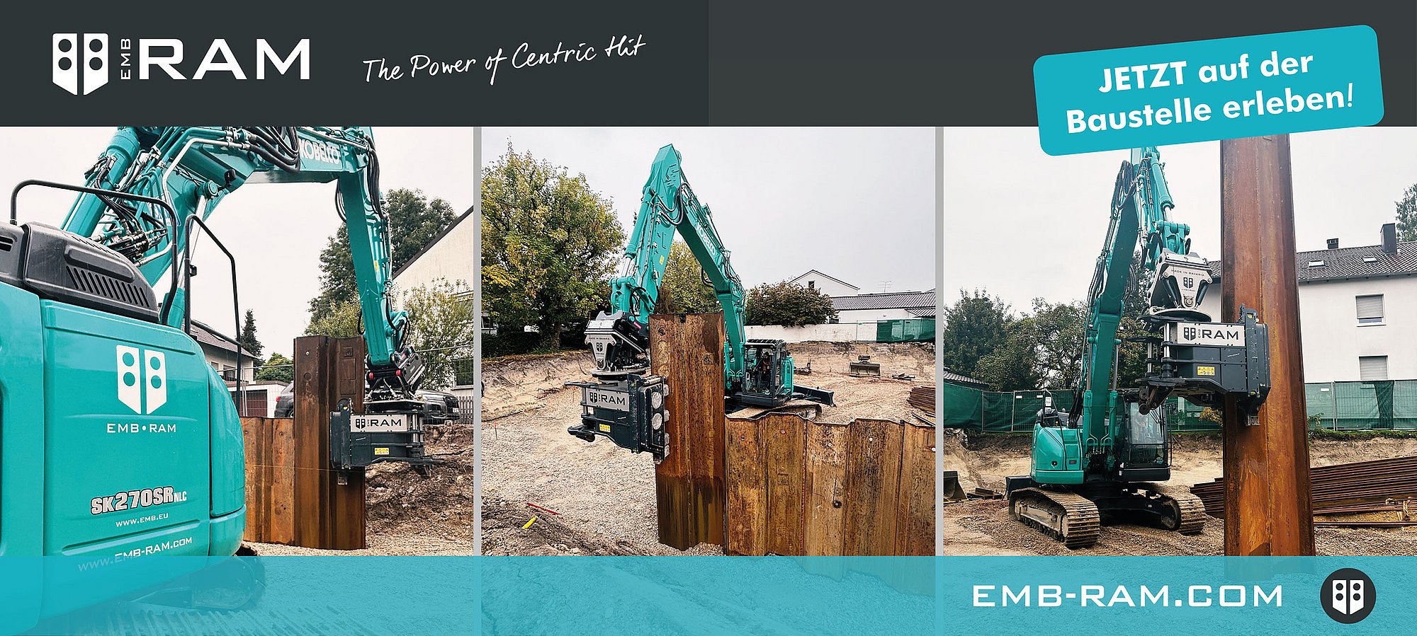 Unsere Seitengrifframme zeigt aktuell auf diversen Baustelle im Raum München ihr ganzes Können – kraftvolles Rammen und Ziehen mit höchster Präzision und minimaler Erschütterung.
